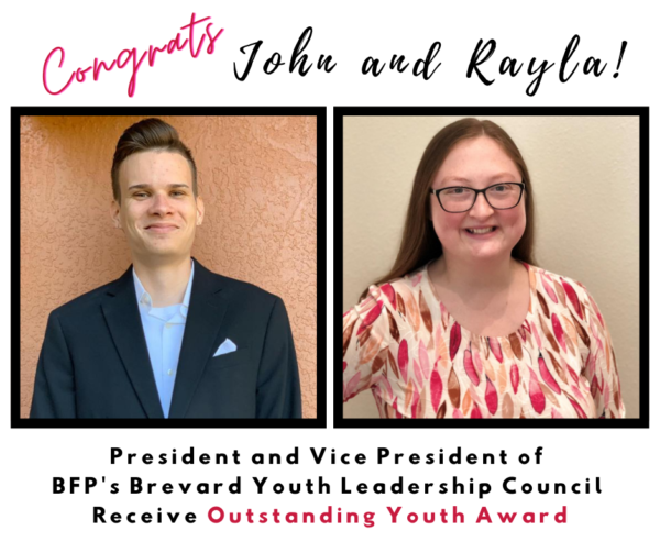 “I cannot think of youth more worthy than Rayla and John for this award as they are true ambassadors of our message of ‘Fostering Hope’ here in Brevard County. These two young adults have touched my life, and have made a grand impact as leaders in advocating for the future of all foster youth throughout Florida,” said Brevard Family Partnership CEO, Phil Scarpelli.